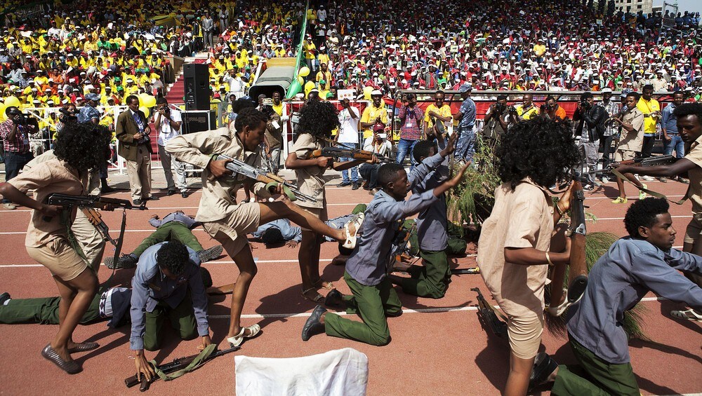 The ruling EPRDF party ended his campaign Thursday with a rally in the capital Addis Ababa where they played out scenes from the time the party was guerrilla fighters who fought against the ruling Communist Party.